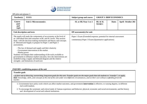 IBDP Microeconomics Unit plan(Template 3) Teaching Resources