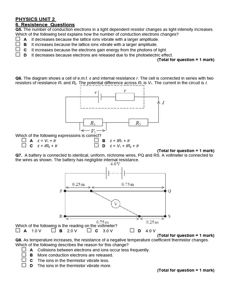 Physics AS Unit 2 6 Resistance PDF Electrical Resistance And