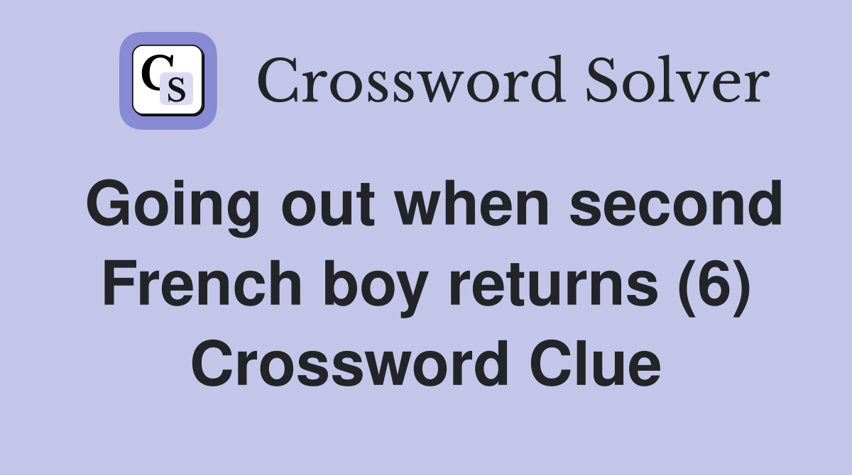 Going out when second French boy returns (6) Crossword Clue Answers