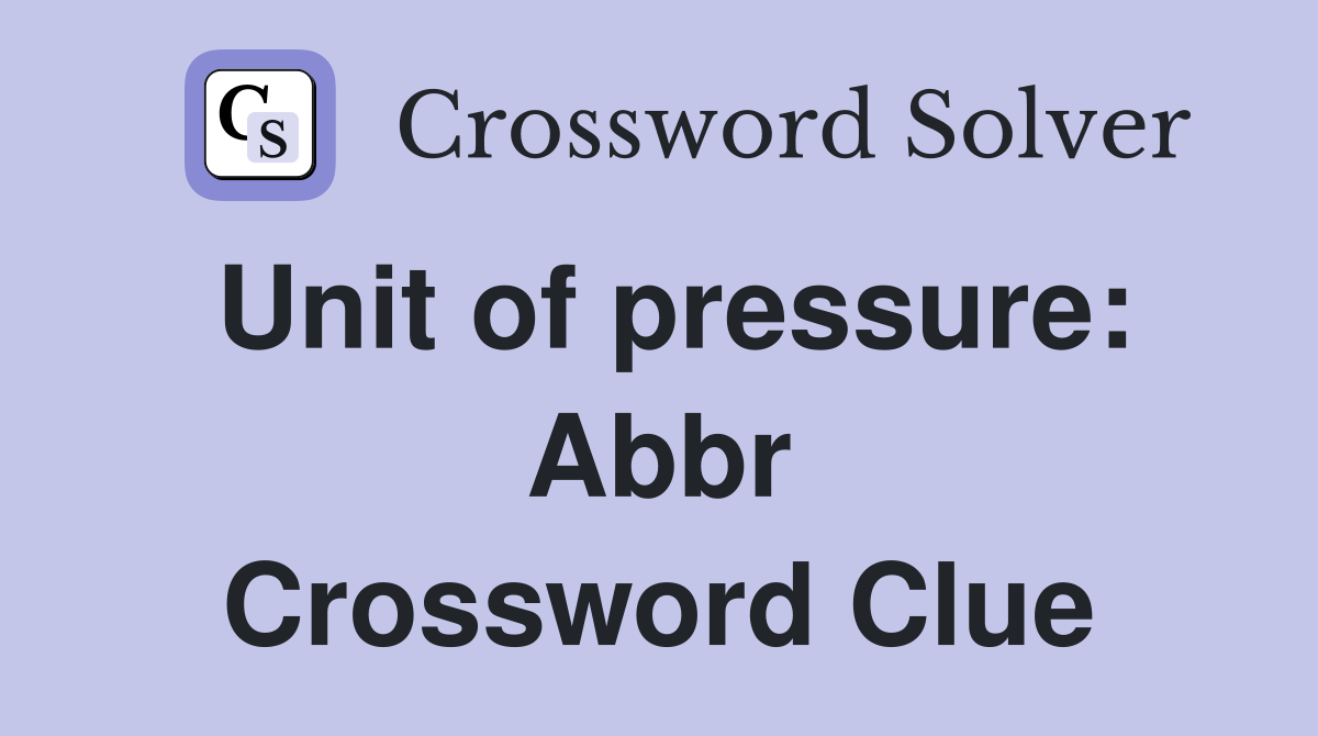 Unit of pressure: Abbr Crossword Clue Answers Crossword Solver