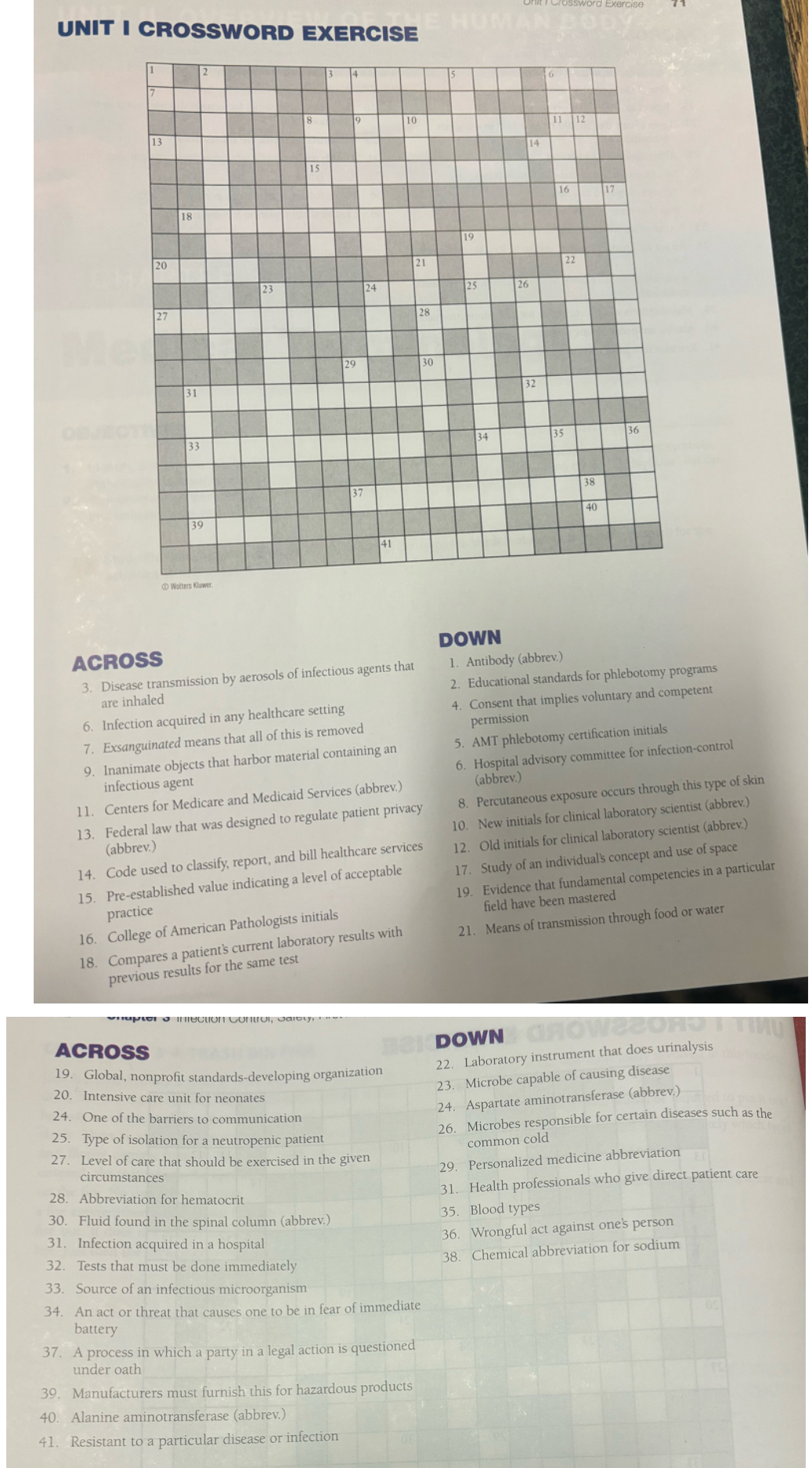 Solved Unit I Crossword Exercise Unit The Healthcare Setting Chegg com