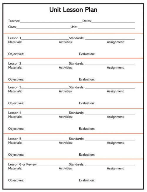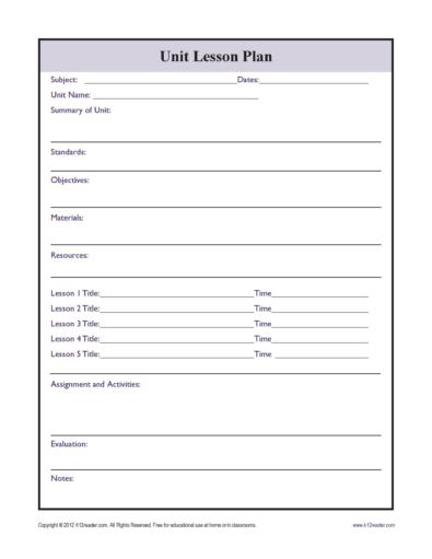 Unit Plan Format Example Free Lesson Plan Templates For Teachers