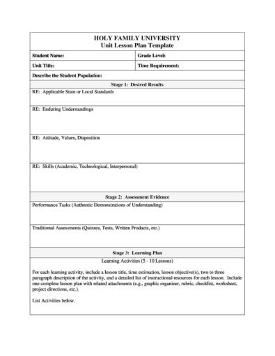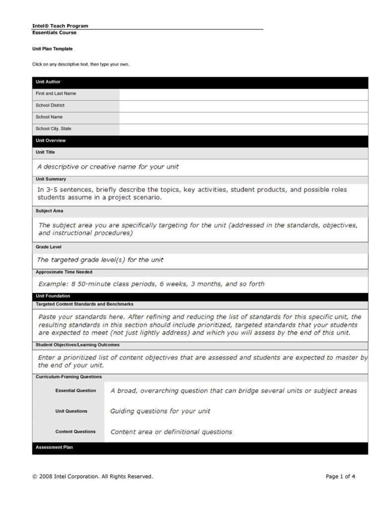 40 Free Unit Plan Templates Pdf Word Sample Formats Blank Unit Plan