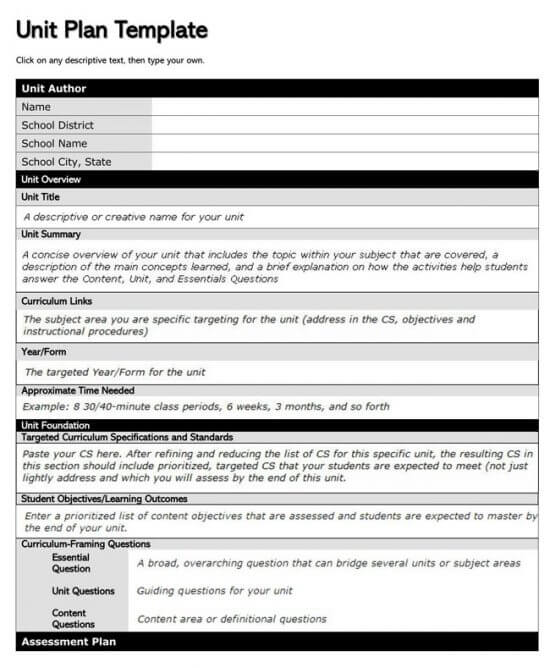 39 Best Unit Plan Templates Word PDF ᐅ TemplateLab