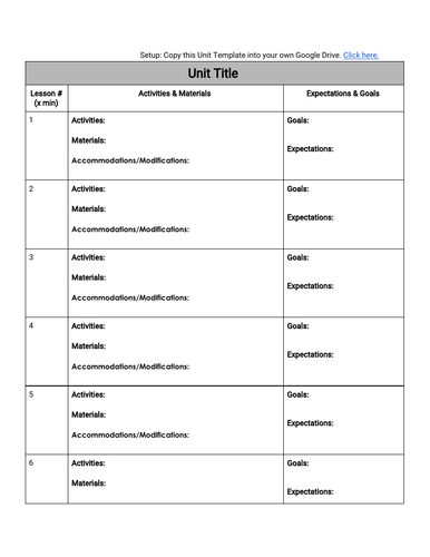 Unit Plan Template Google Doc