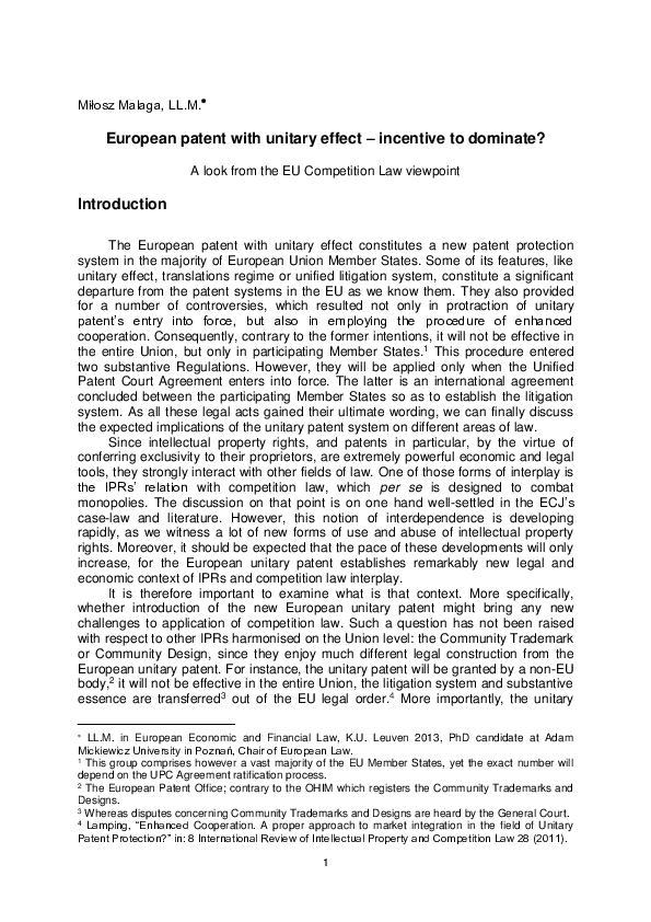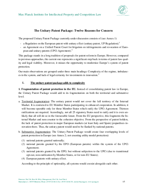 (PDF) The Unitary Patent Package Unified Patent Court Problems