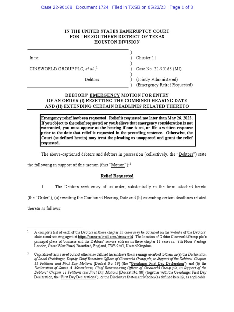 In The United States Bankruptcy Court For The Southern District of
