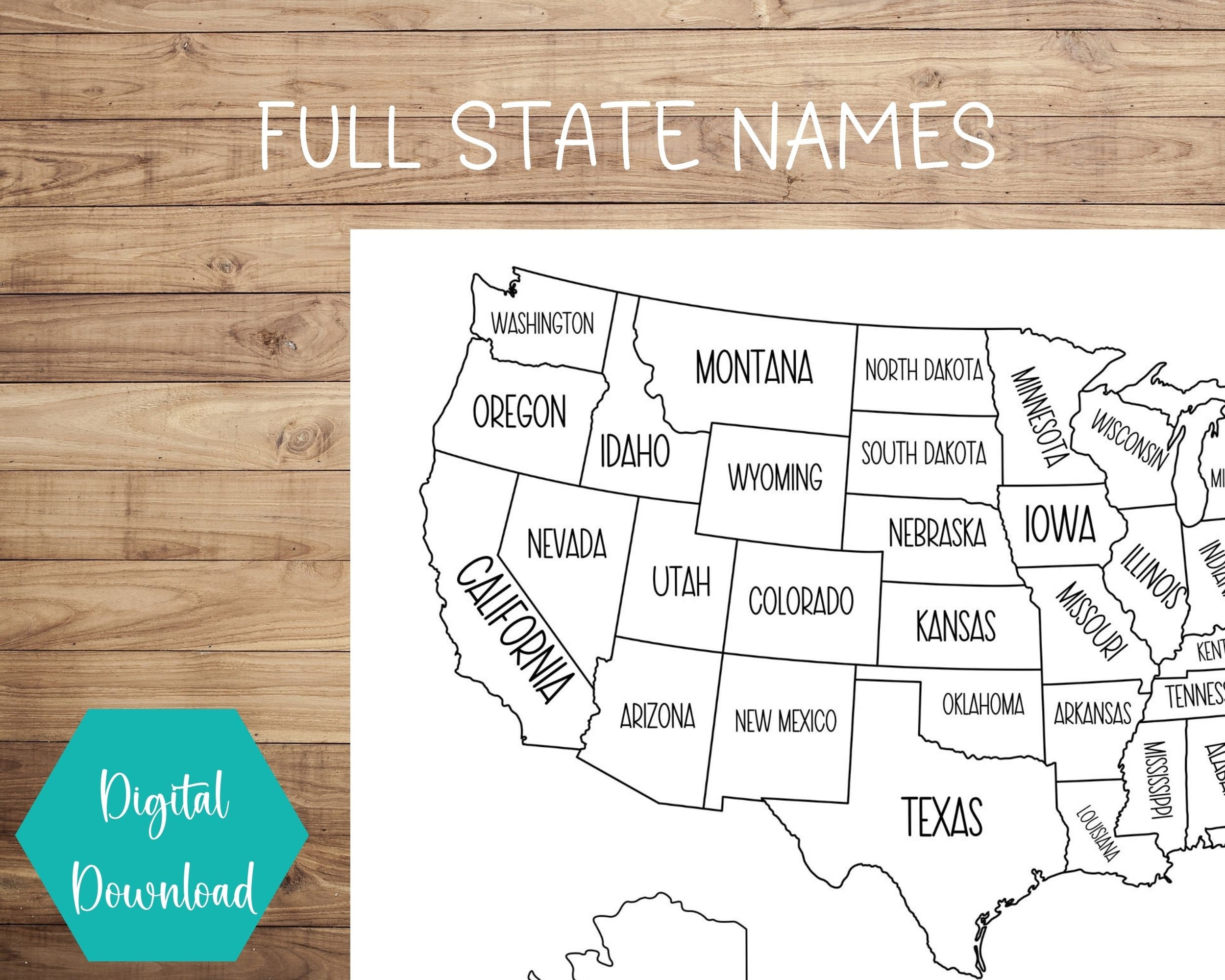 Large US Map PRINTABLE State Capitals Map USA Map Wall Art Usa