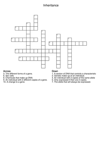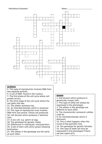 Inheritance Crossword Teaching Resources