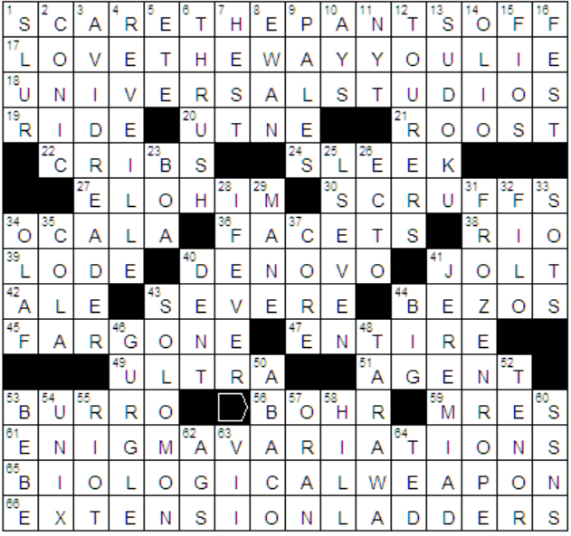Monday July 31 2017 NYT crossword by David Steinberg