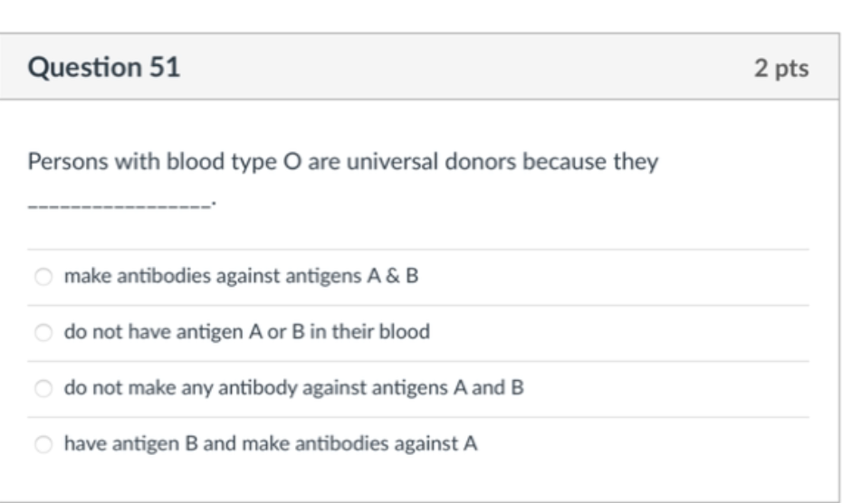 Solved: People with type O negative blood are universal donors Any