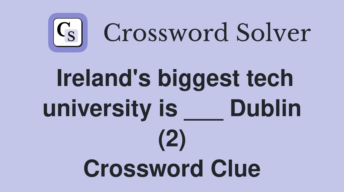 Ireland #39 s biggest tech university is Dublin (2) Crossword Clue