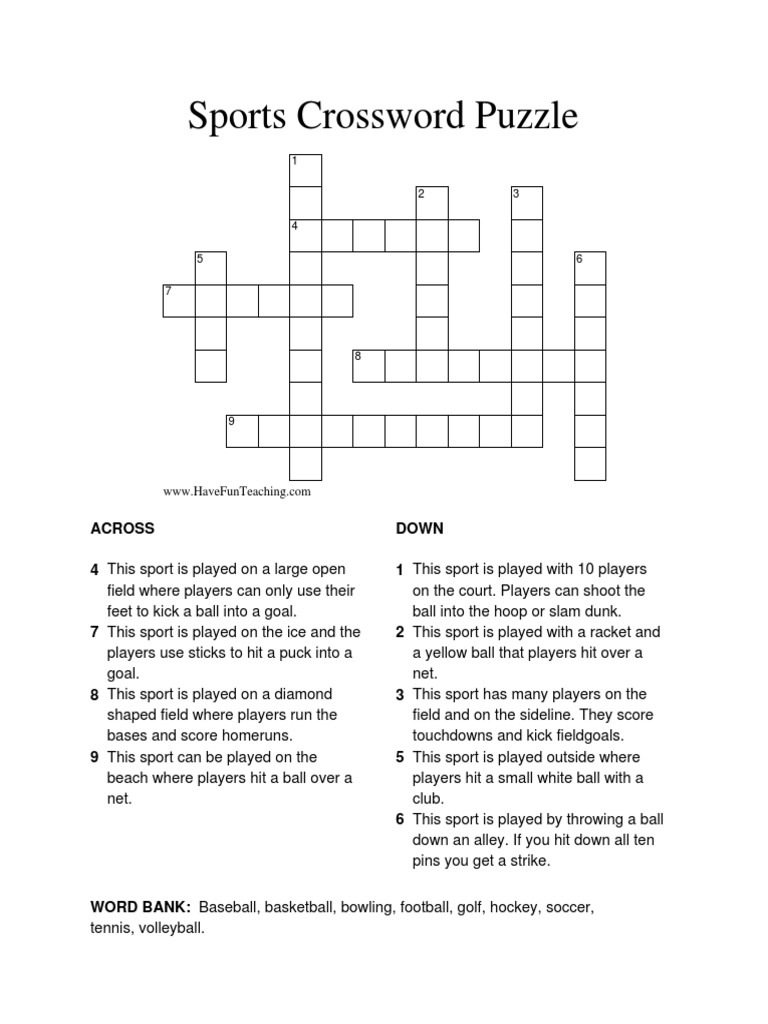 Printable Sports Crossword Puzzles PrintableLib