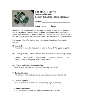 Educational Robotics Lesson Building Block Template tekbot unl Doc