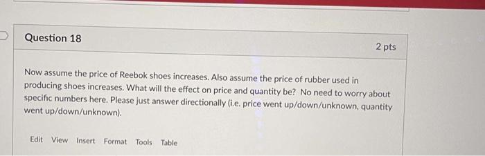 Solved Now assume the price of Reebok shoes increases Also Chegg com