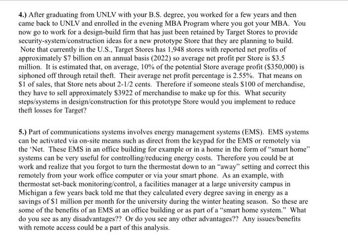 Solved 4 ) After graduating from UNLV with your B S degree Chegg com