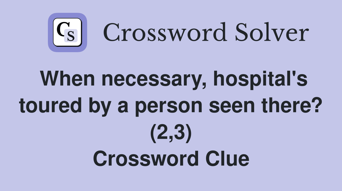 When necessary hospital #39 s toured by a person seen there? (2 3