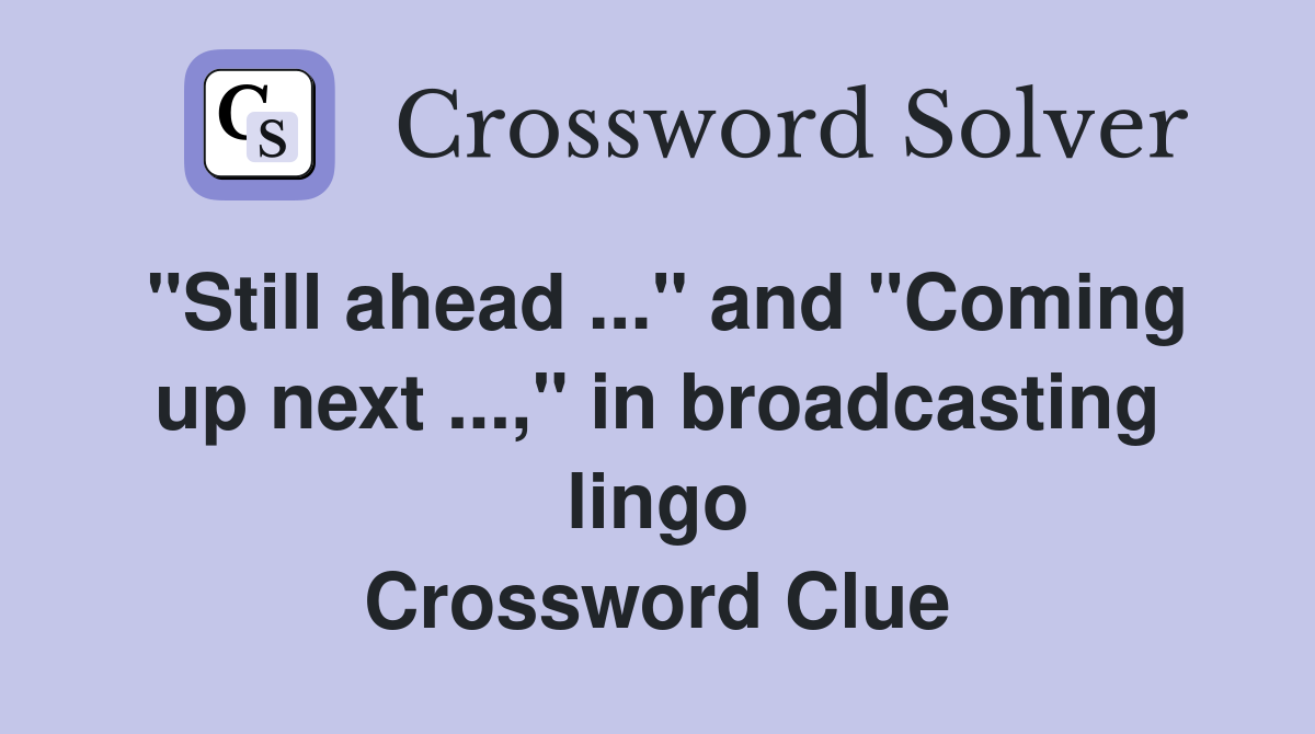 quot Still ahead quot and quot Coming up next quot in broadcasting lingo