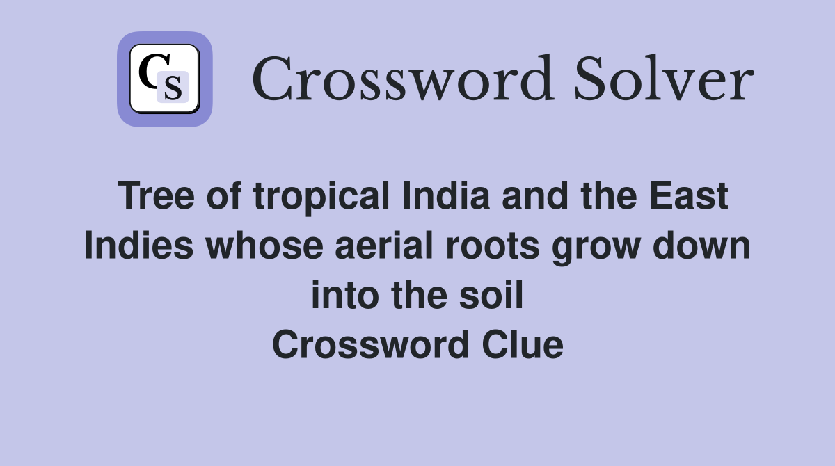 Tree of tropical India and the East Indies whose aerial roots grow down