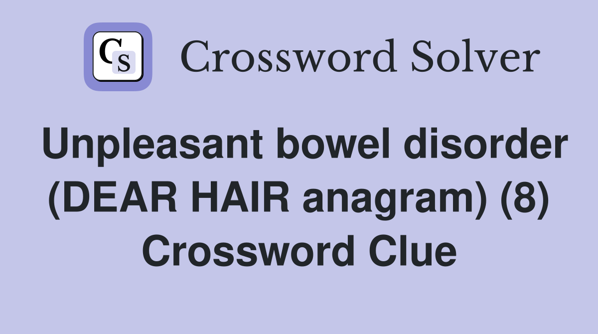 Unpleasant bowel disorder (DEAR HAIR anagram) (8) Crossword Clue