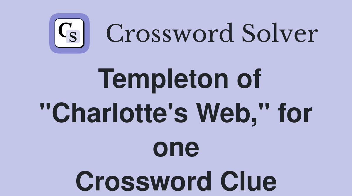 Templeton of quot Charlotte #39 s Web quot for one Crossword Clue Answers