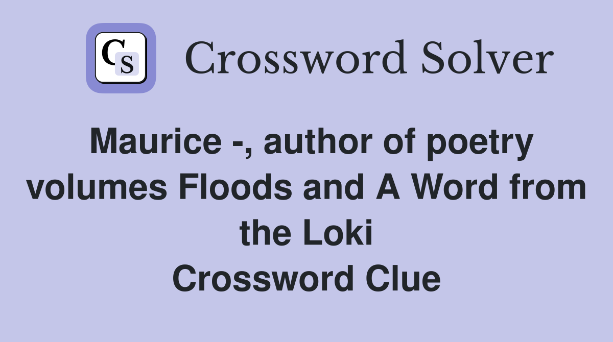 Maurice author of poetry volumes Floods and A Word from the Loki