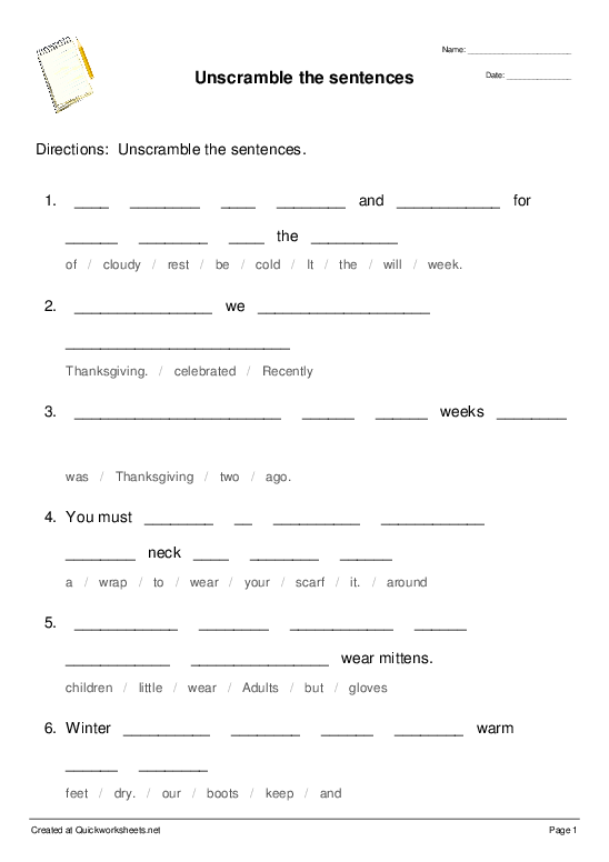 5 Scrambled Sentences With Answers With Worksheet ( February 2025