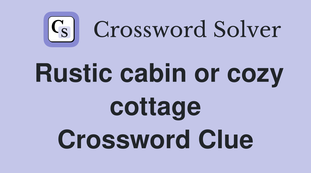 Rustic cabin or cozy cottage Crossword Clue Answers Crossword Solver