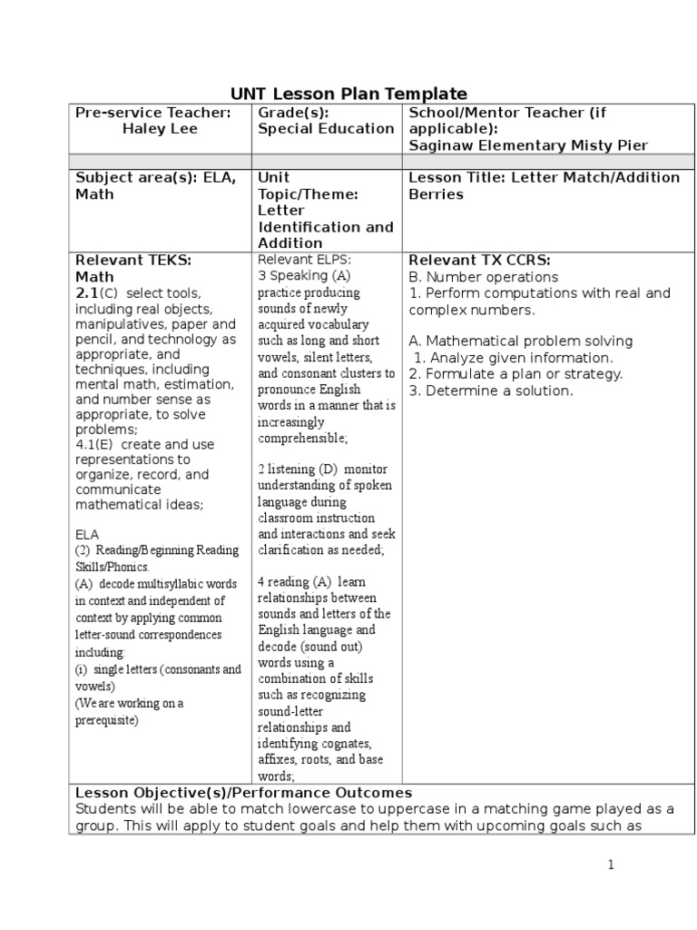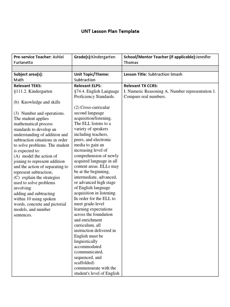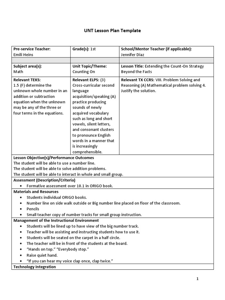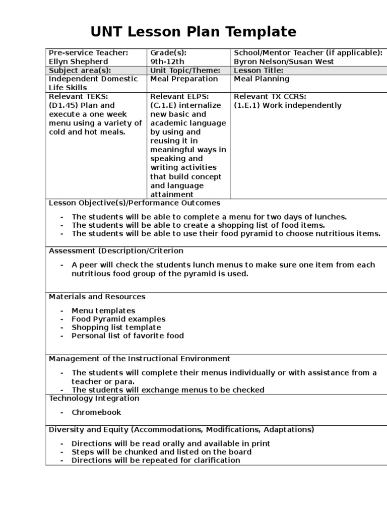 Unt Lesson Plan Template