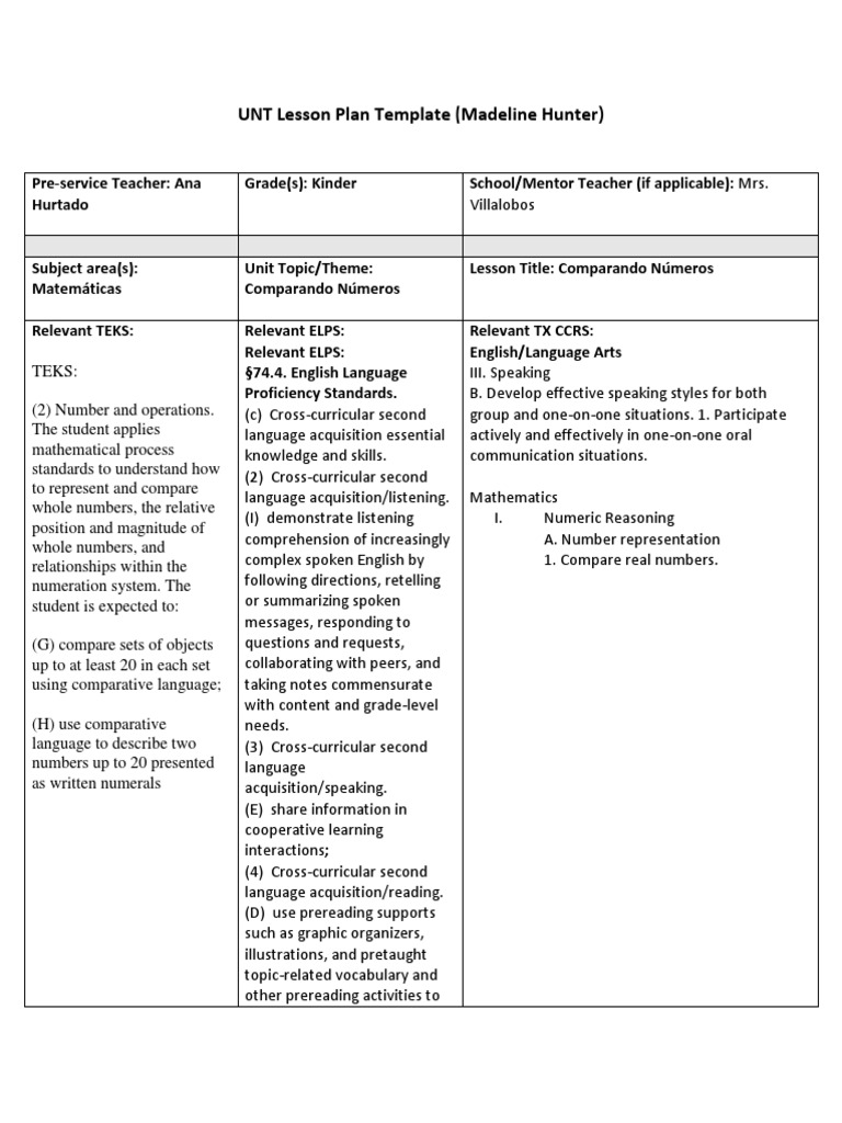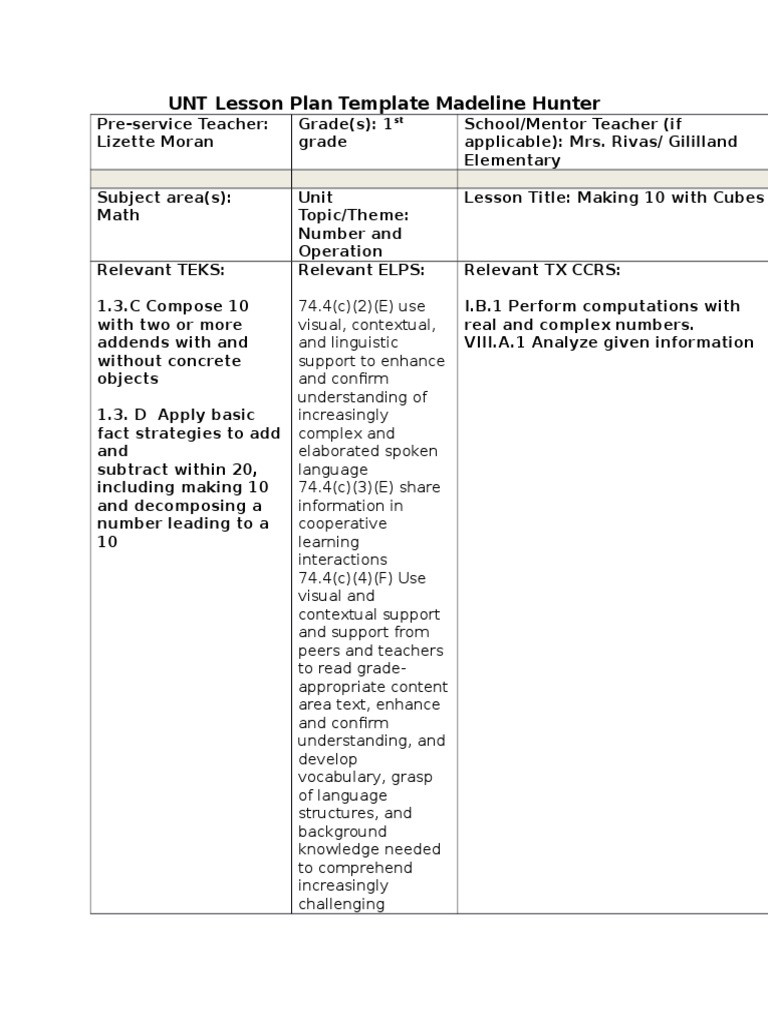 UNT Lesson Plan Template (Madeline Hunter) PDF Classroom Teachers