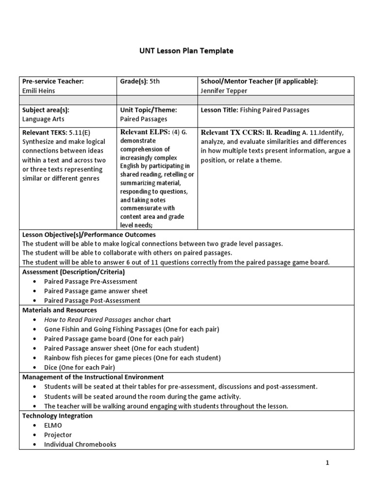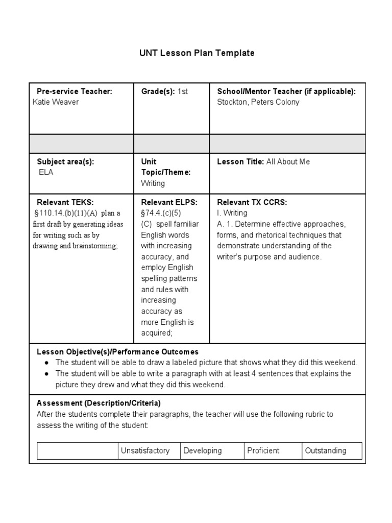 Unt Common Lesson Plan Template