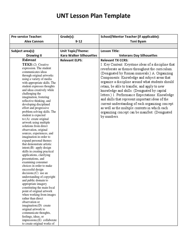 UNT Lesson Plan Template PDF Lesson Plan Drawing