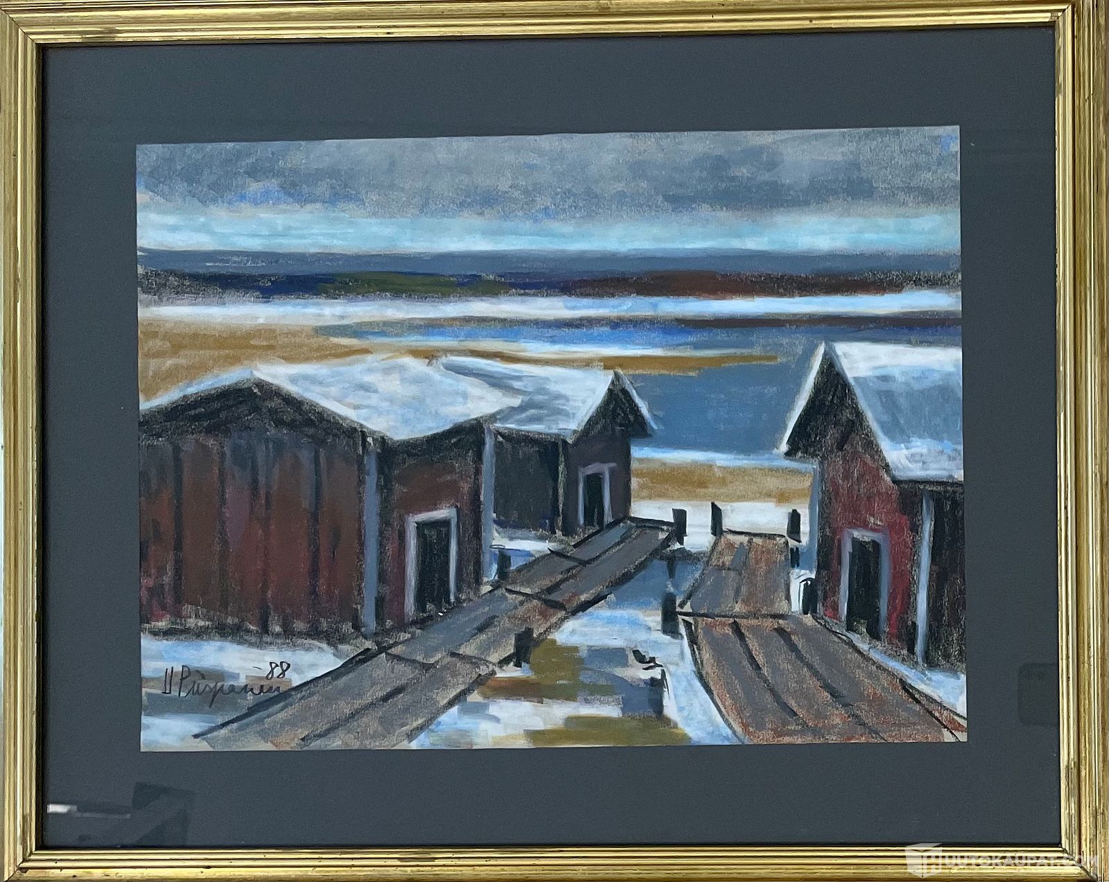 Järvimaisemataulu akvarellityö Pirkanmaalta / Unto Piispanen 1988