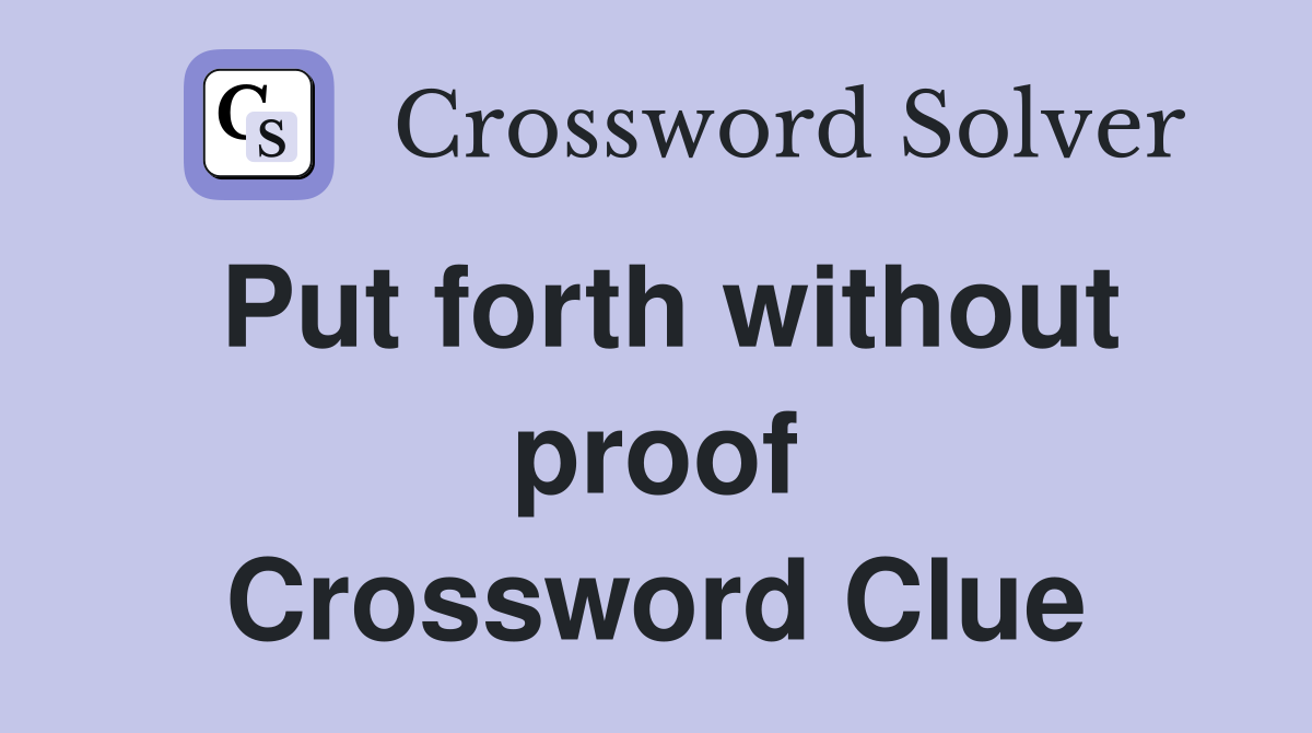 Put forth without proof Crossword Clue Answers Crossword Solver