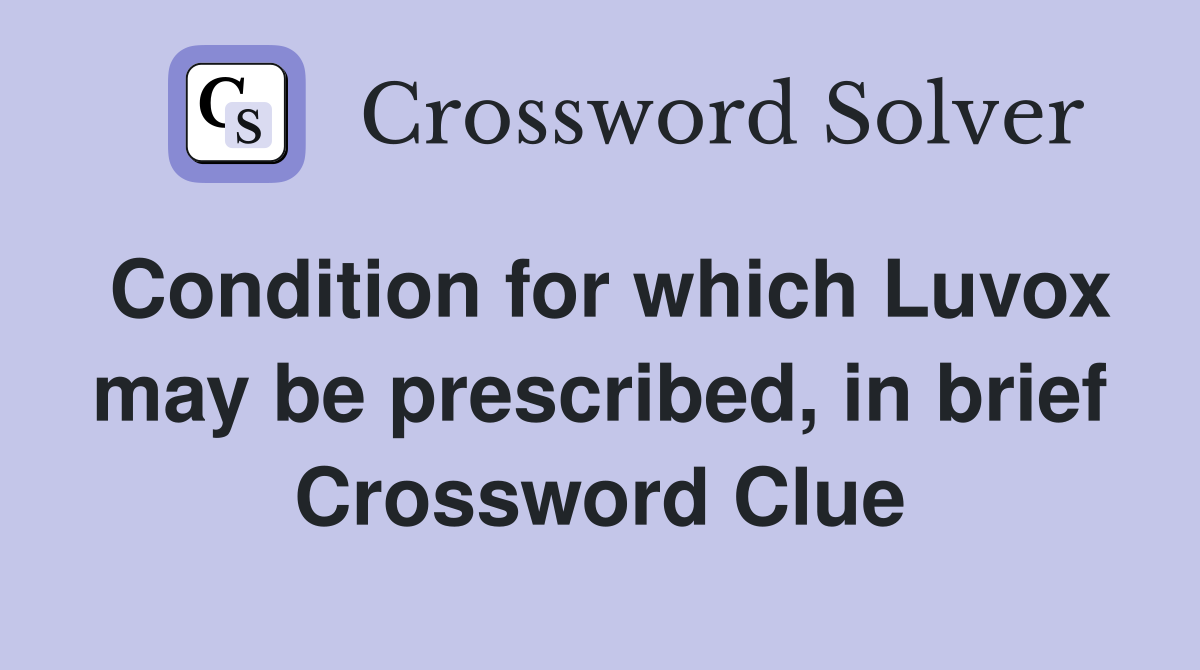Condition for which Luvox may be prescribed in brief Crossword Clue