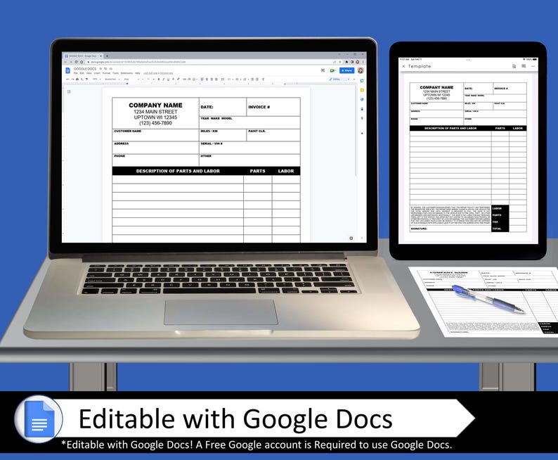 Basic Auto Repair Invoice Template for Mechanics or Any Other Type of