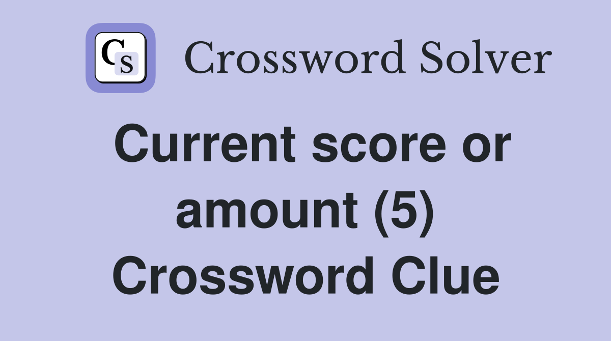 Current score or amount (5) Crossword Clue Answers Crossword Solver