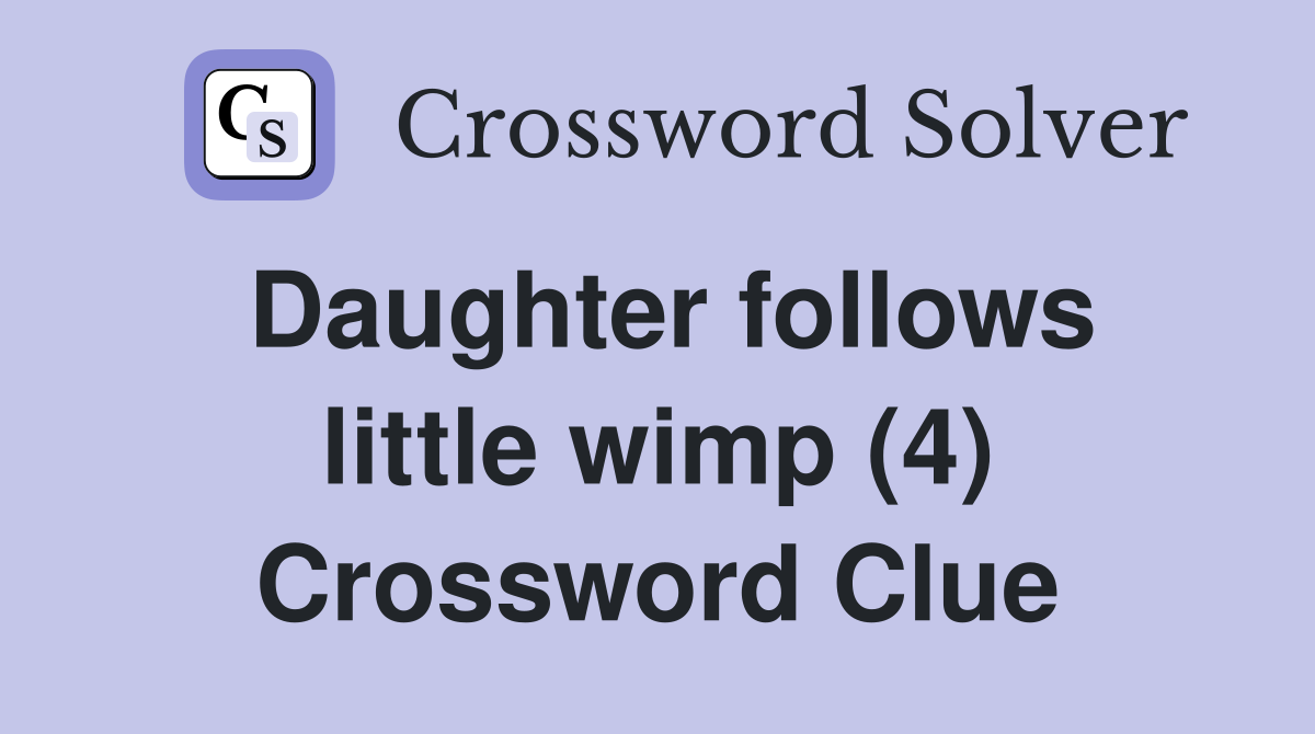 Daughter follows little wimp (4) Crossword Clue Answers Crossword