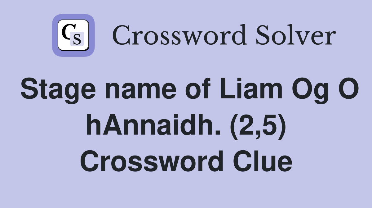Stage name of Liam Og O hAnnaidh (2 5) Crossword Clue Answers