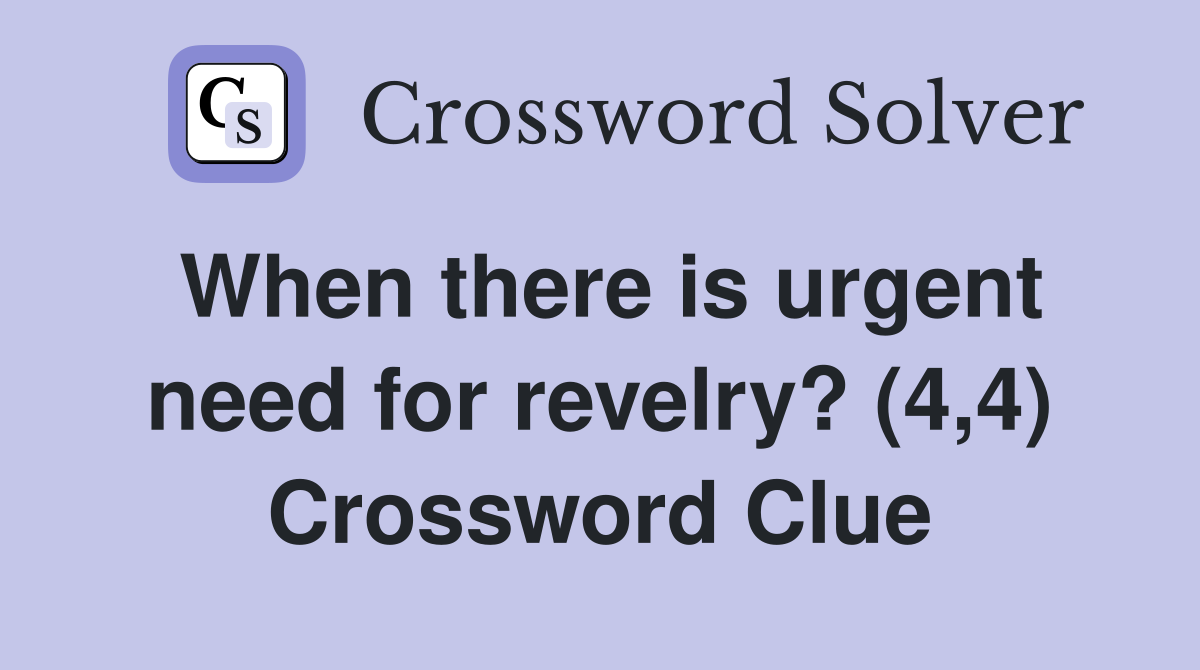 When there is urgent need for revelry? (4 4) Crossword Clue Answers