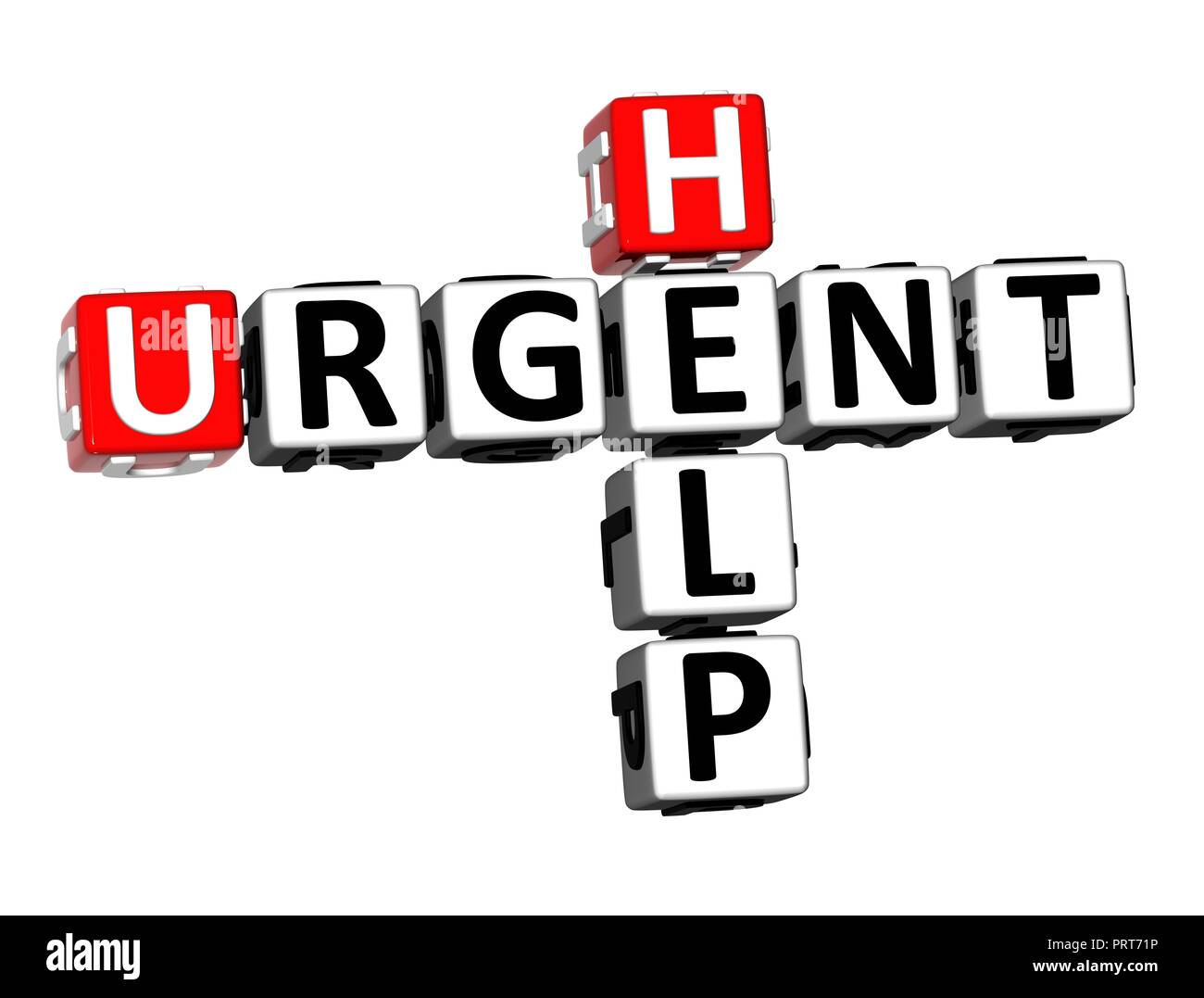 3D Rendering Crossword Help Urgent Word Over White Background Stock