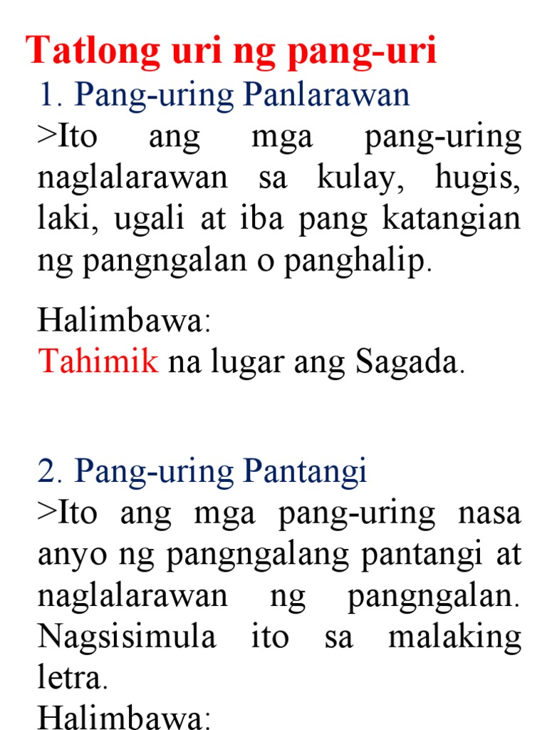 Uri ng Pang uri: Tatlong Uri ng Pang uri at mga Halimbawa nito • Noypi