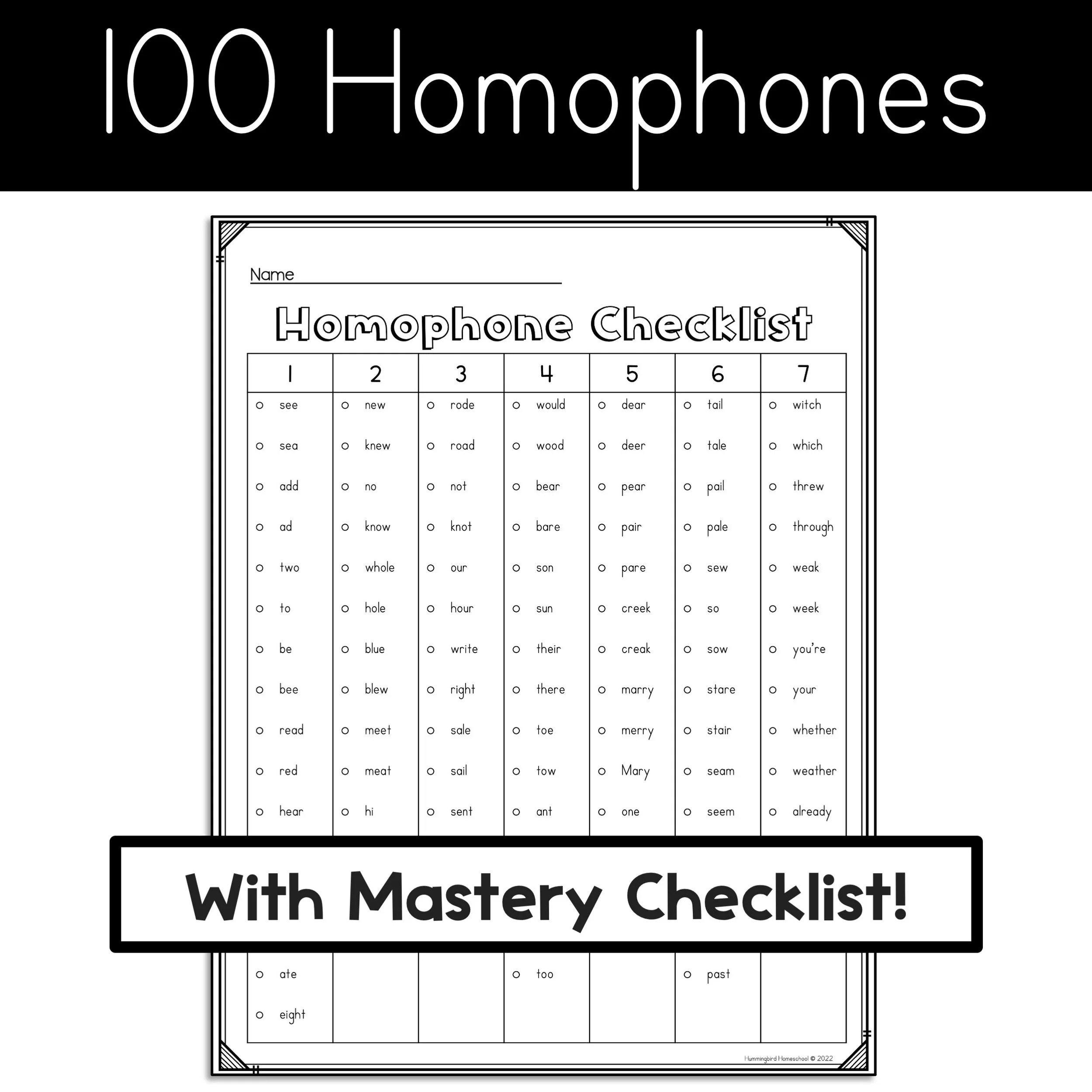 Homophone Crossword Puzzles with Answers Hummingbird Homeschool