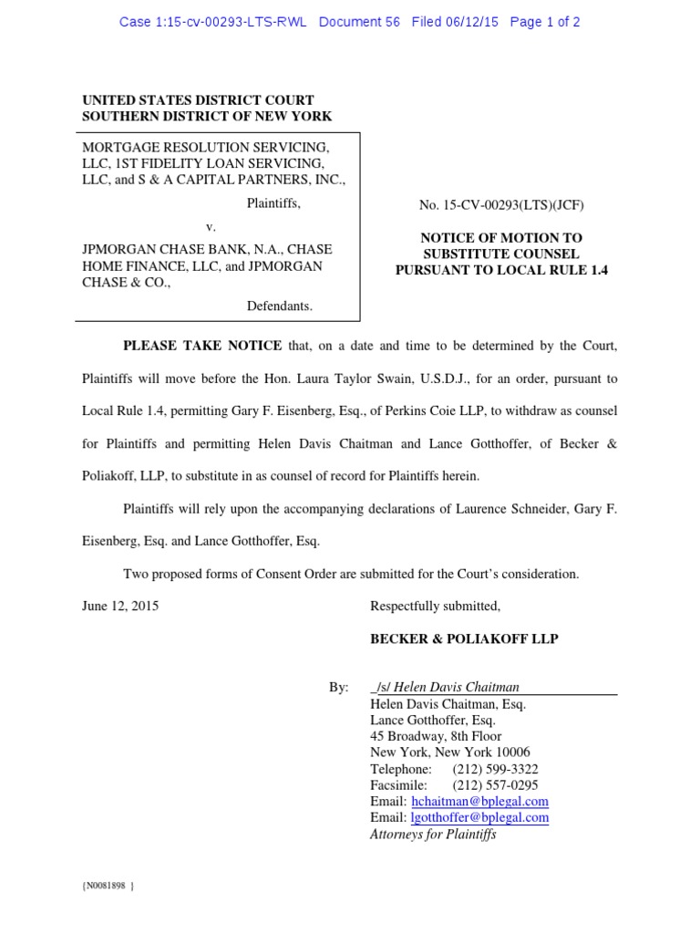 56 NOTICE of Substitution of Attorney PDF Chase Bank Jp Morgan Chase