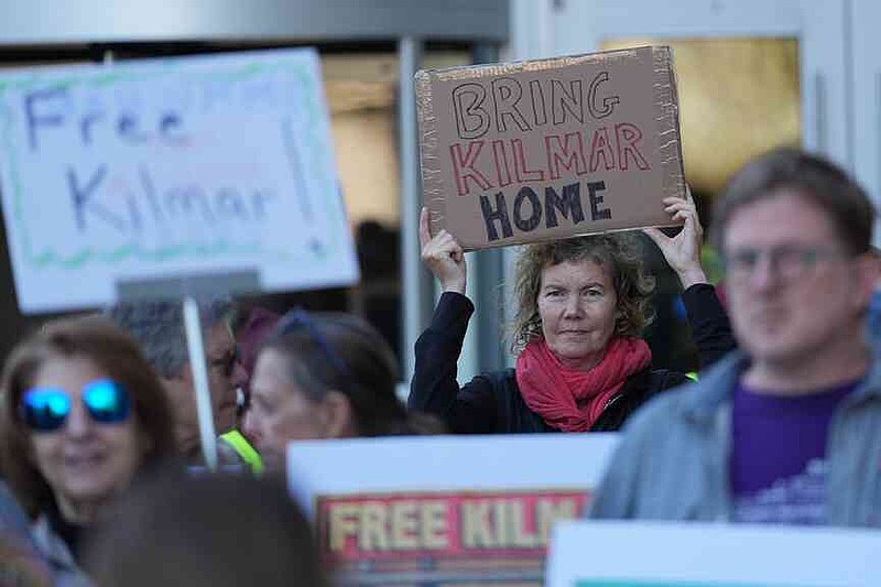 Supporters of Kilmar Abrego Garcia rally outside of the U S District