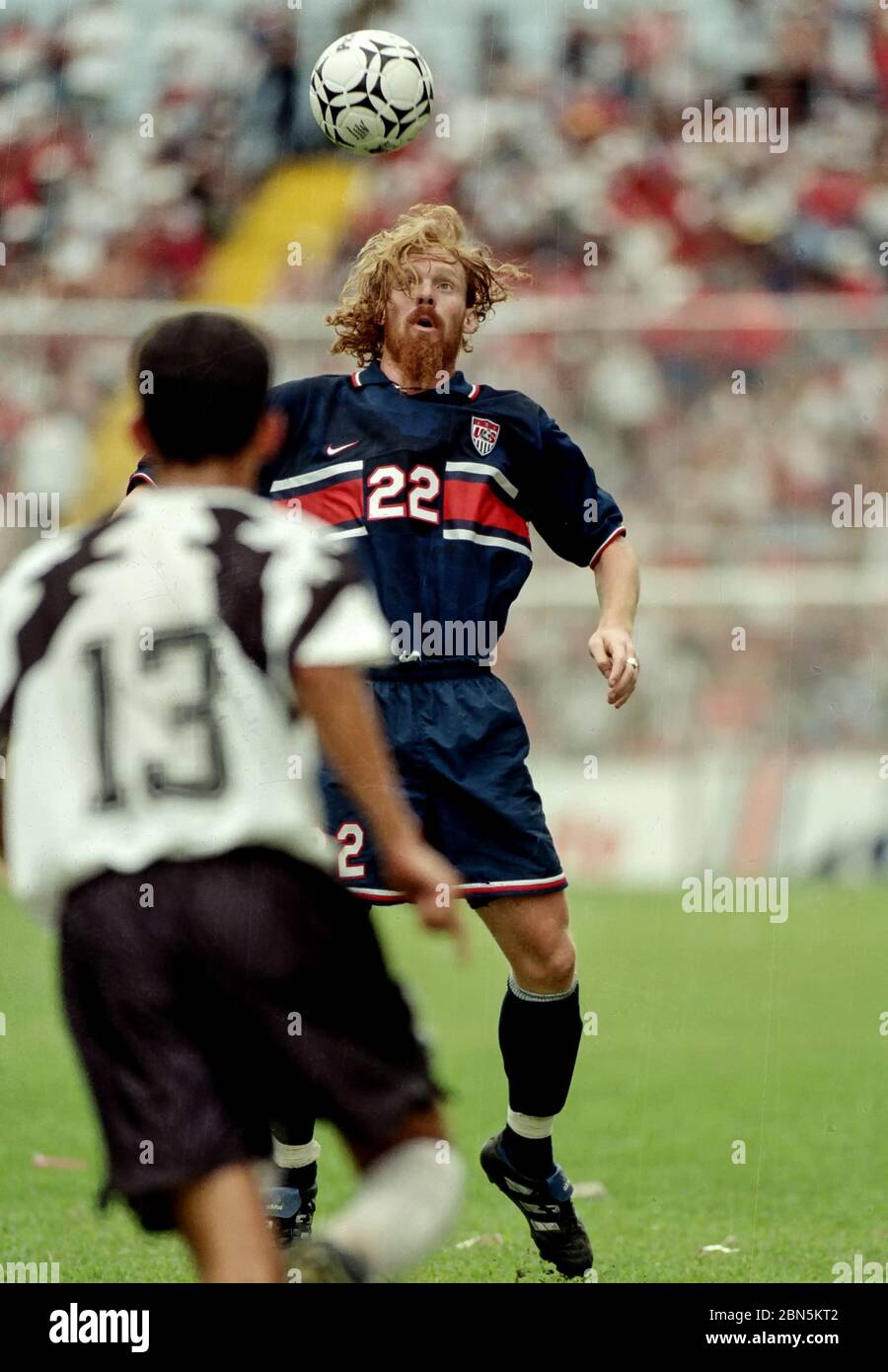 Former US soccer star Alexi Lalas in action against Mexico Stock Photo
