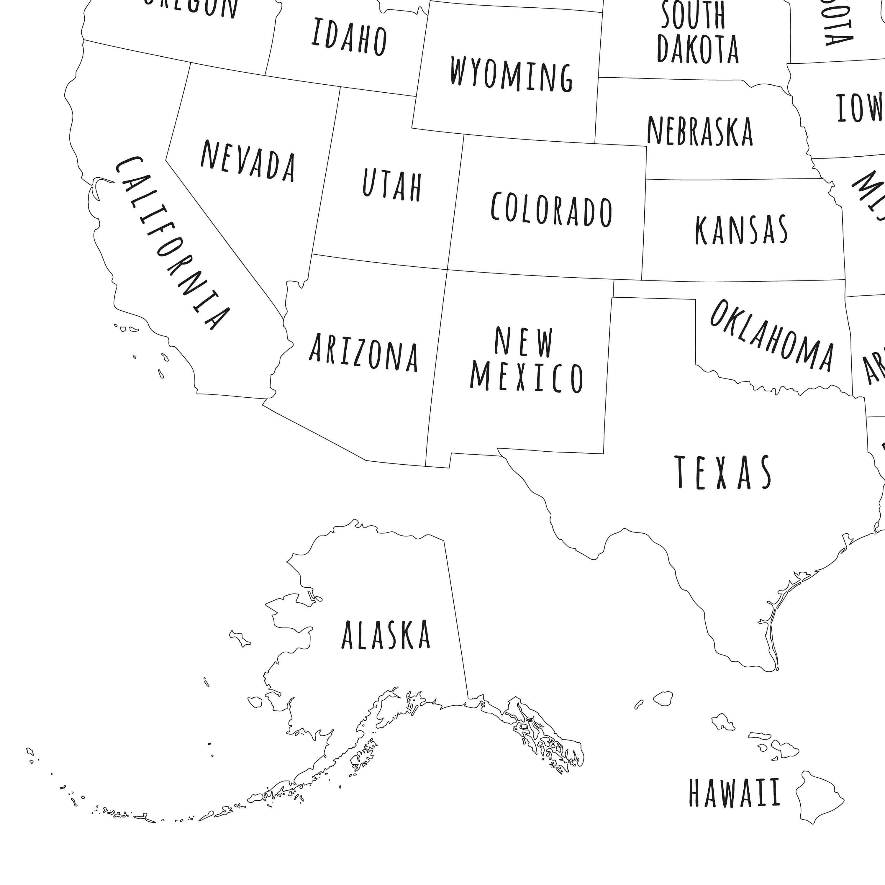 US Map PRINTABLE State Map USA Map Wall Art Usa Map for Kids Home