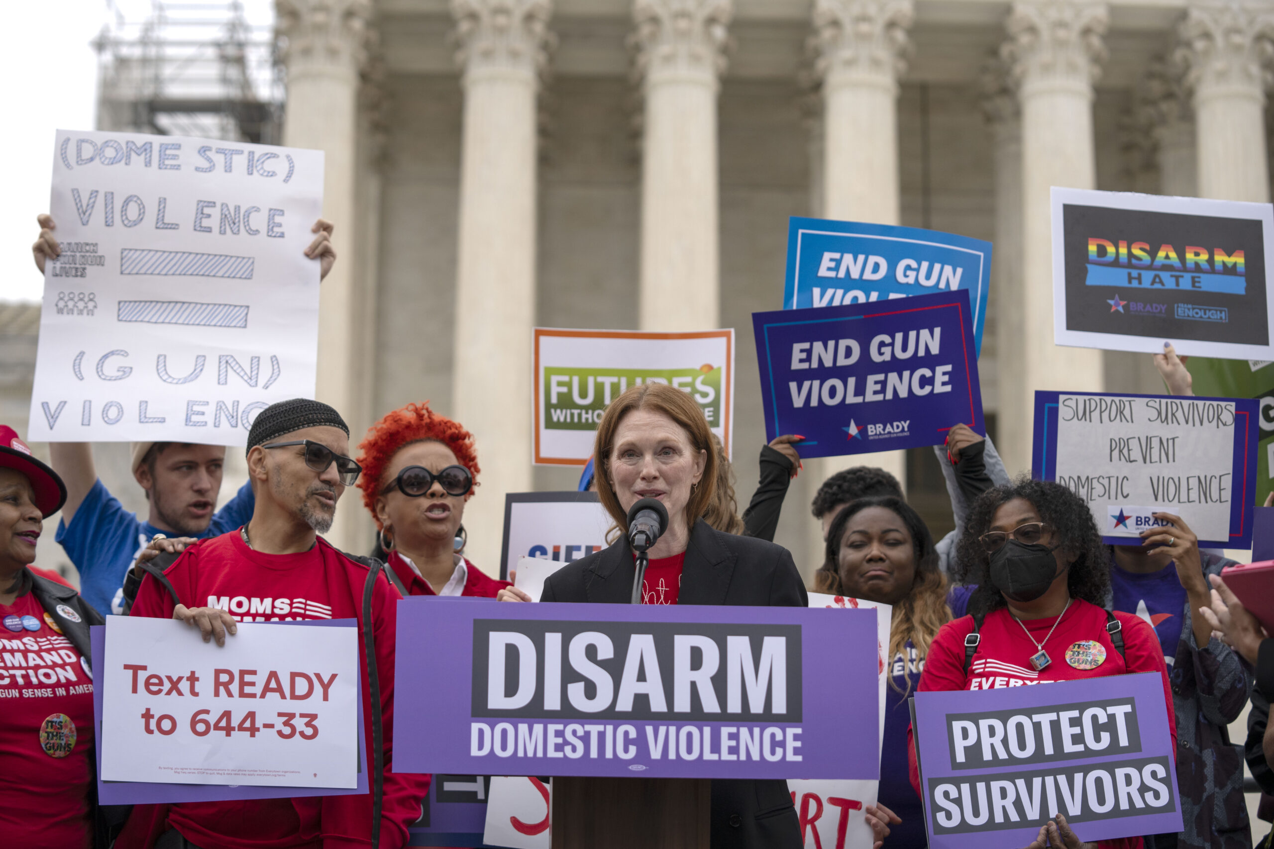 Actress Julianne Moore delivers speech outside Supreme Court amid
