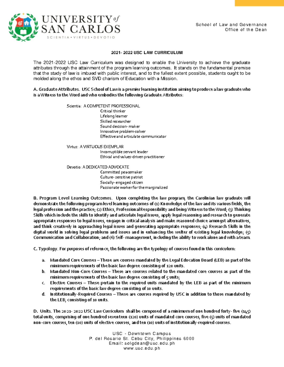 USC Law Curriculum AY 2021 2022 O ff i c e o f t h e D e a n U S C