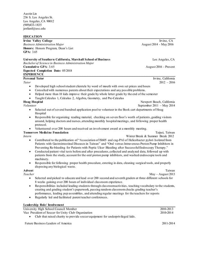 Usc Marshall Resume Template